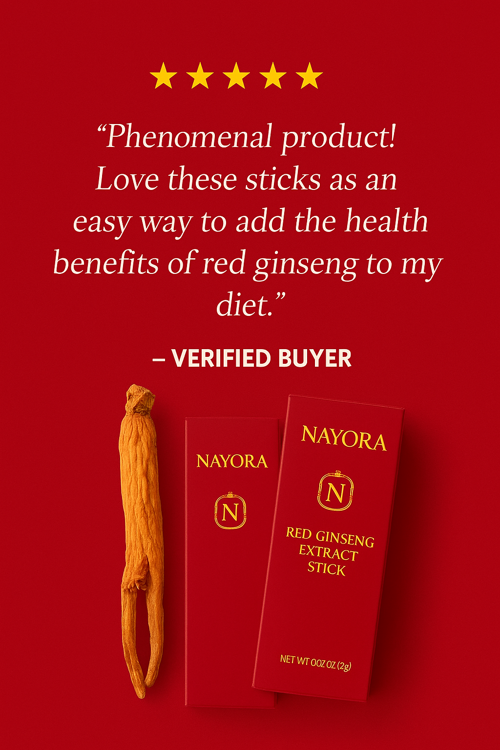 Nayora is a premium Korean Red Ginseng extract crafted from 5-year-old roots. It helps restore natural energy, sharpen focus, and support overall vitality — so you feel more like yourself again.